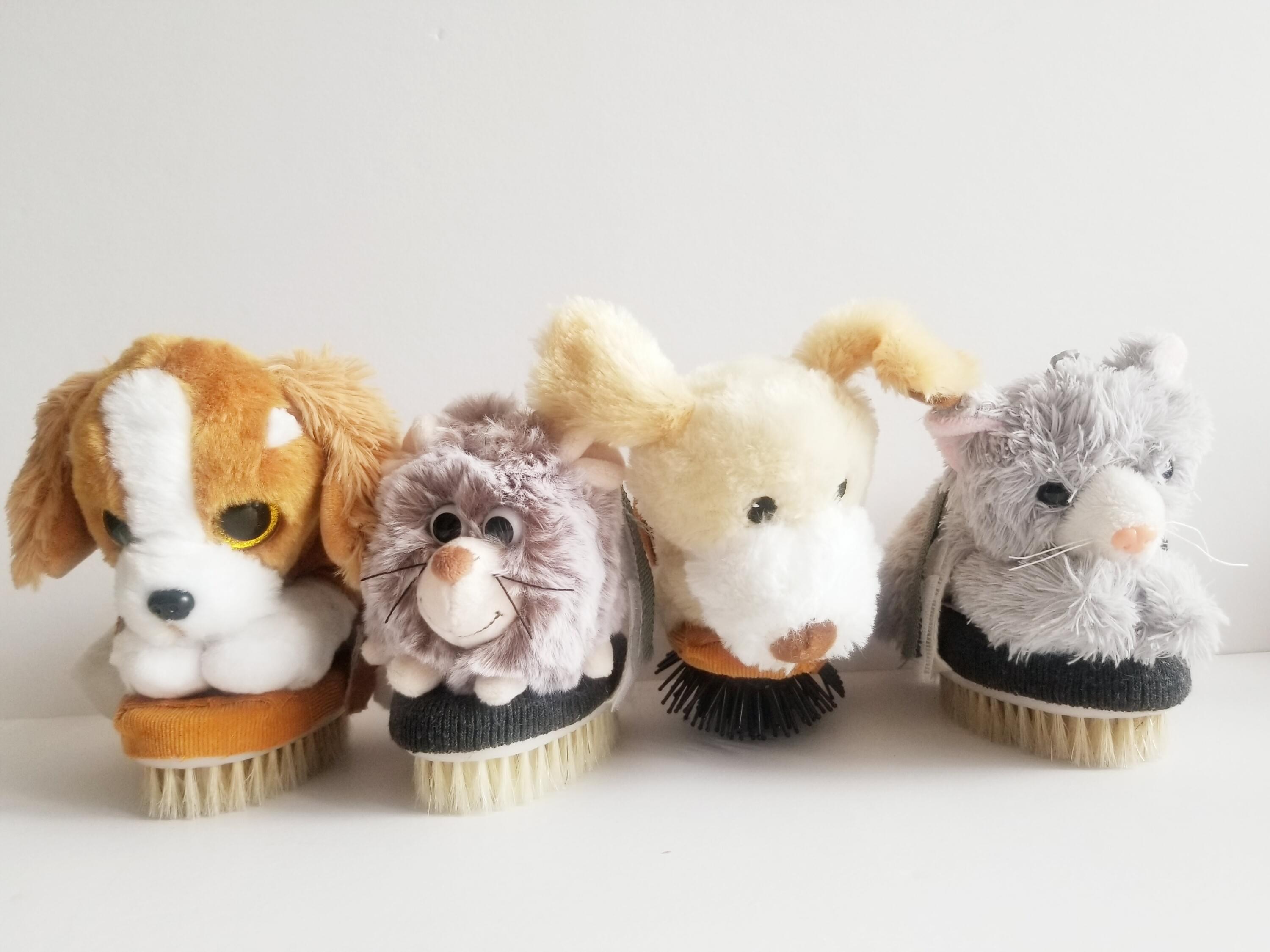 These plush Knotty Pet Pals have a removable machine washable plush pet and brush for convenience and cleanliness. The plush pet can be washed, dried and re-attached for more bonding experiences.